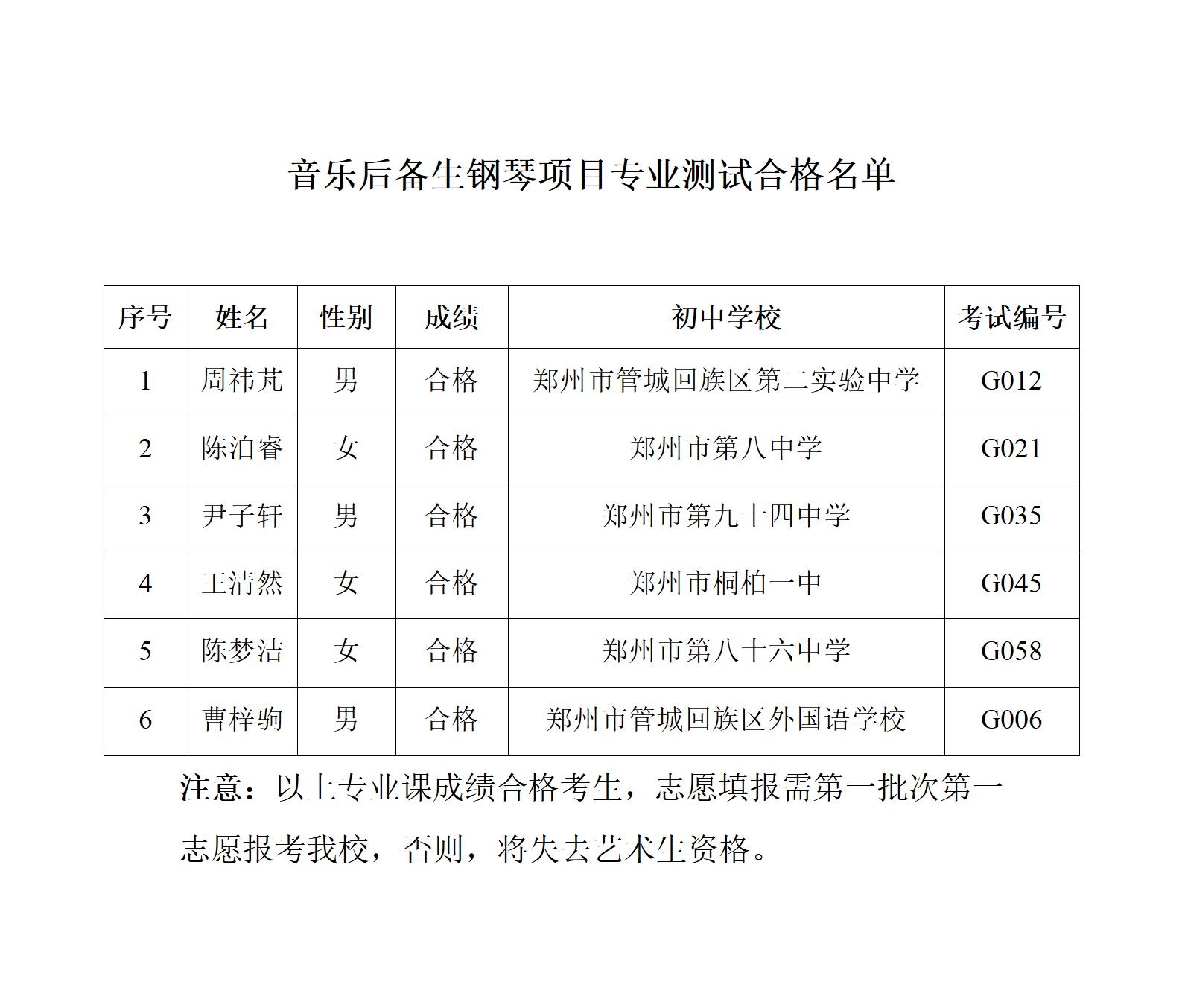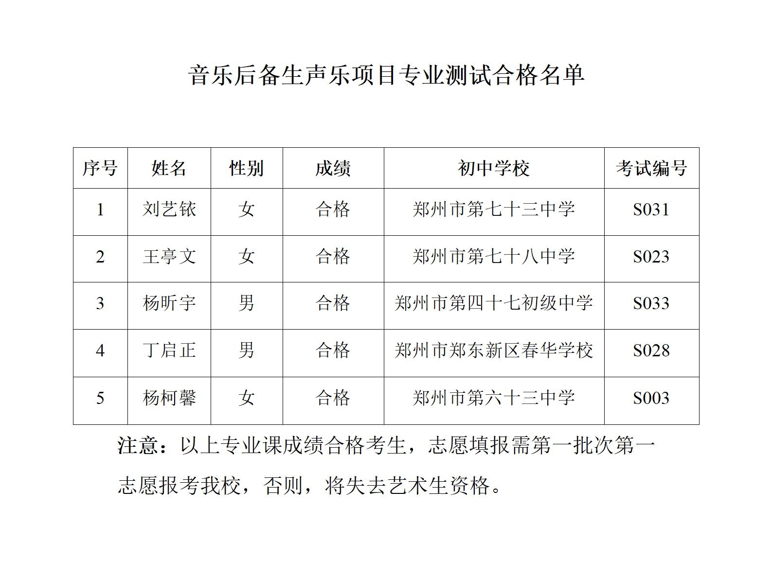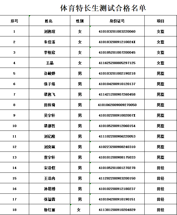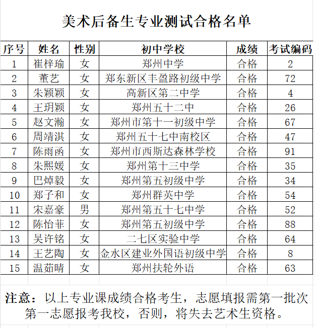 艺术、体育后备生专业测试合格名单公示