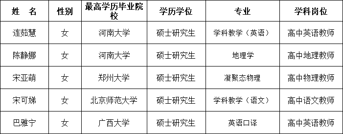 郑州市第五高级中学2024年度公开招聘高层次教师拟录用名单公示(8月)
