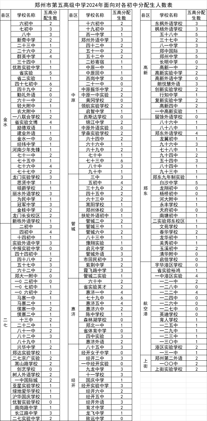 4.分配生录取多少分:请关注 郑州市第五高级中学 微信公众号,有2023年及前几年每个初中学校分配生降分幅度统计表,各初中学校可根据自己学校往年的分配生降分参考选报。